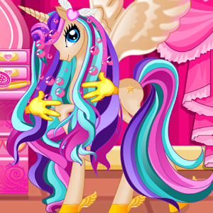 Pony princesses have the loveliest hair ever seen right? Amazing colors, dazzling hairstyles... but it's not really that easy to make this happen. Enter the magic world of ponies and discover their beauty secrets. When it comes to shampoos, conditioners and other hair care products they are all made after secret recipes known only by them. And not only this, the special care that they have for their hair and the hairstyling process are just essential. Go on and play this fun hair game, you'll love this beautiful pony princess! Have fun and follow the hair care and hairstyling steps indicated in the game. And when the hair looks perfect, go on and dress up this lovely princess, make her look sparklingly beautiful!